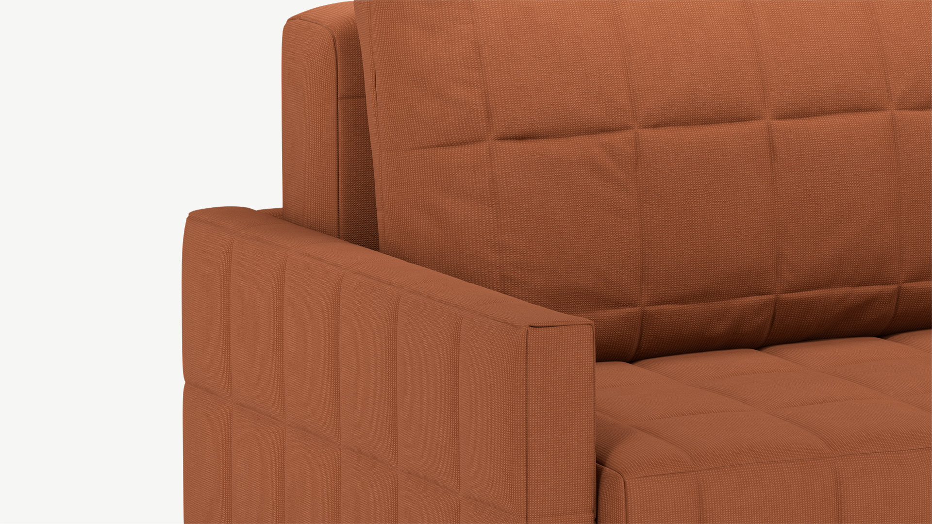 Диван MOON FAMILY 124 удачно сочетает вполне традиционный образ с веяниями моды. Так, простые лаконичные формы и стежка в квадрат, использованная для всей поверхности дивана, создают образ привычный и уютный, а вот мягкие подлокотники и приспинные подушки без утяжки — дань современным тенденциям.