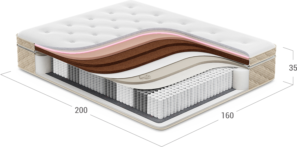 Обеспечивает упругую поддержку тела, воздействуя как множество микропружин, снимает лишнюю нагрузку с мышц и помогает расслабиться.
