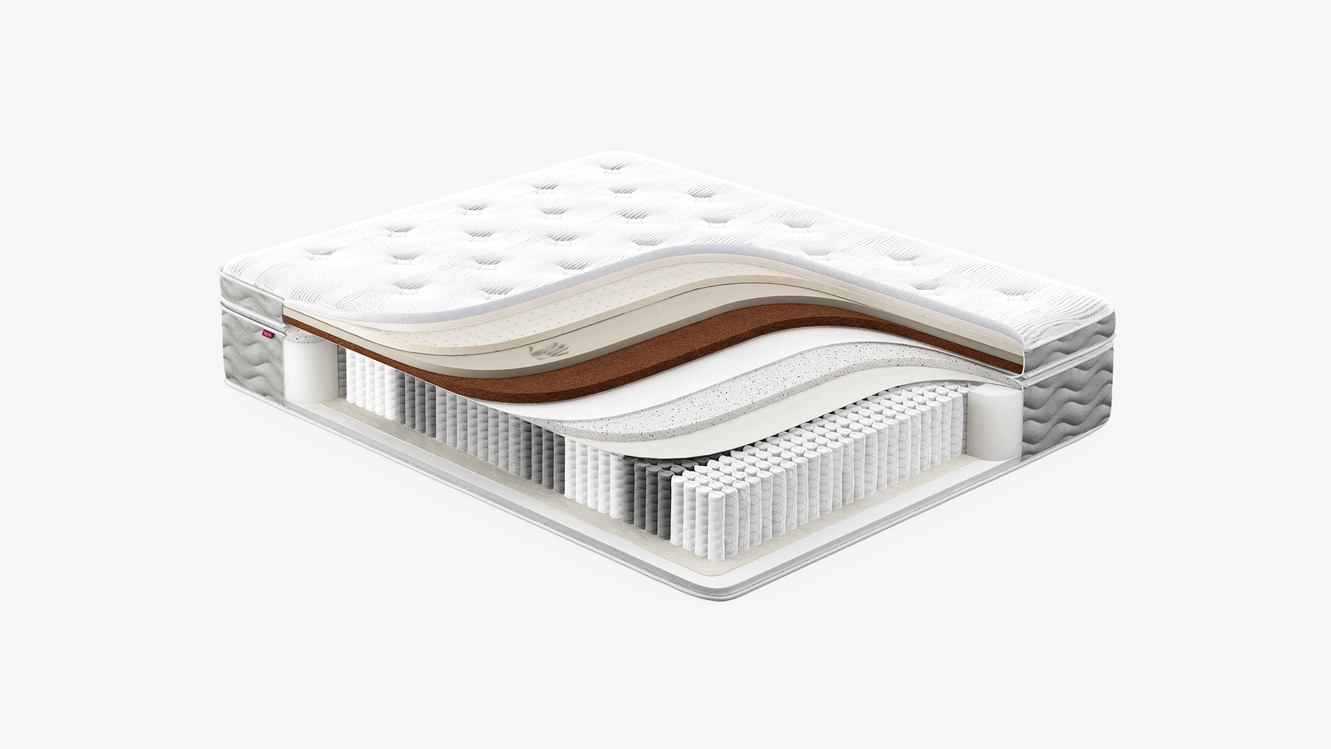 Значительно повышает жесткость спального места, обеспечивает равномерную поддержку тела во время сна. Полностью состоит из натуральных материалов. Добавляет прочности всей конструкции матраса.