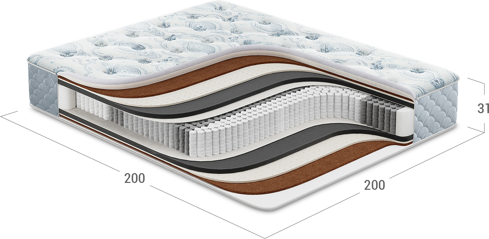 Матрас, в основу которого положен независимый пружинный блок (НПБ). Обратите внимание: чем большее количество пружин приходится на спальное место, тем точнее оказывается поддержка спины, а значит, более комфортным становится матрас и Ваш сон.