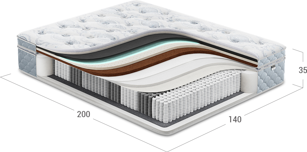 Надежно изолирует комфортные слои от соприкосновения с пружинным блоком и защищает материалы наполнения матраса от износа.