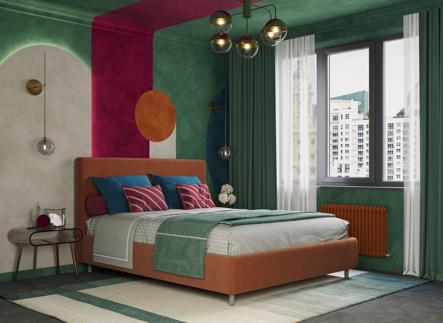 Творческий подход к выбору обивочного материала меняет образ дизайна. Велюр за счет своей бархатистой фактуры привносит в пространство шика и утонченности. Шенилл дополняет оформление спальни природными текстурами, создавая атмосферу тепла и уюта.