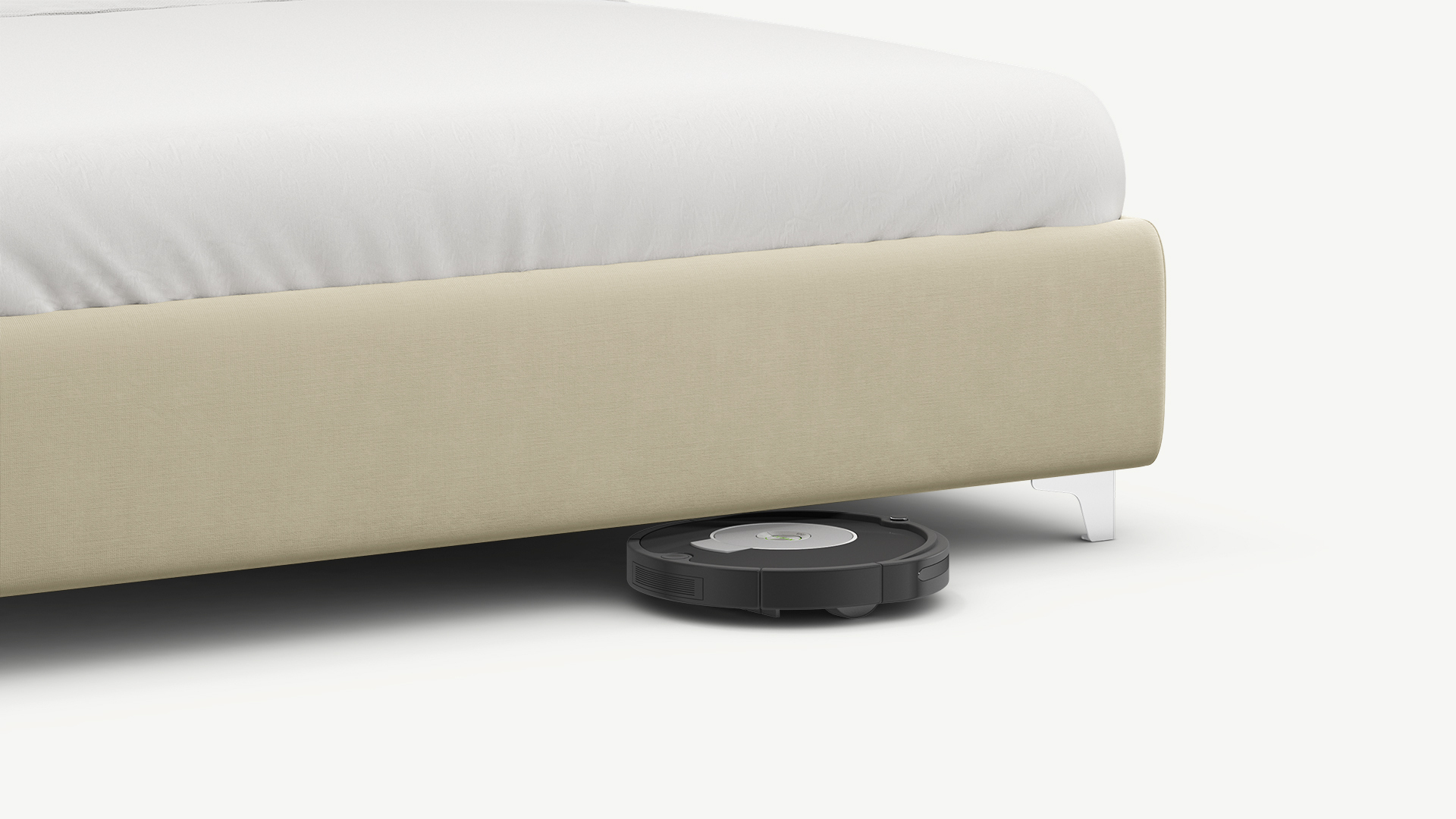 Высокие металлические опоры создают над полом достаточный просвет для движения робота-пылесоса, что помогает поддерживать чистоту и порядок в доме.