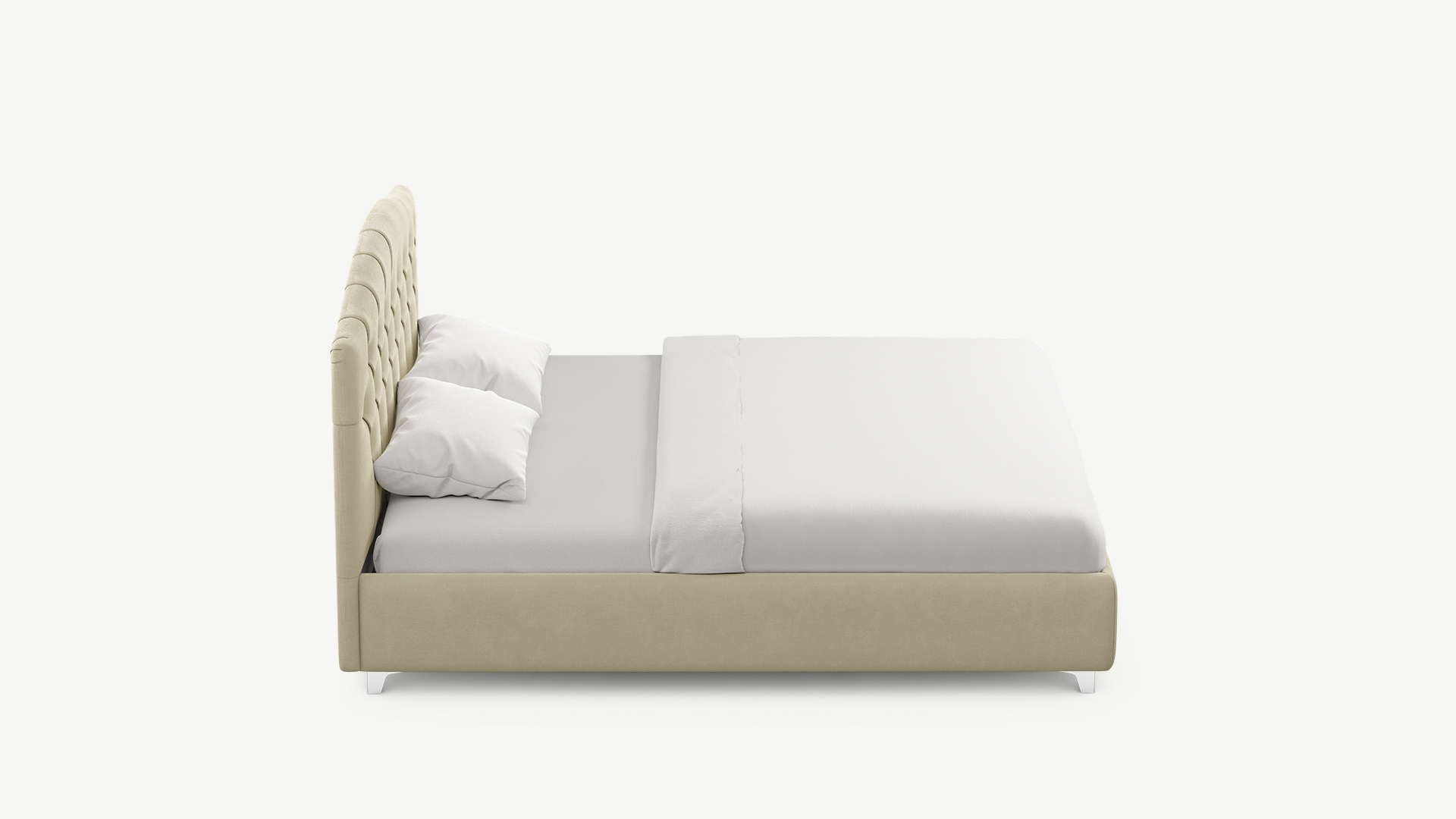 Кровать MOON 1157 создает ощущение праздника. Фигурное изголовье с классической каретной стяжкой формирует торжественный образ кровати, привнося в интерьер элементы дворцового стиля и роскоши.