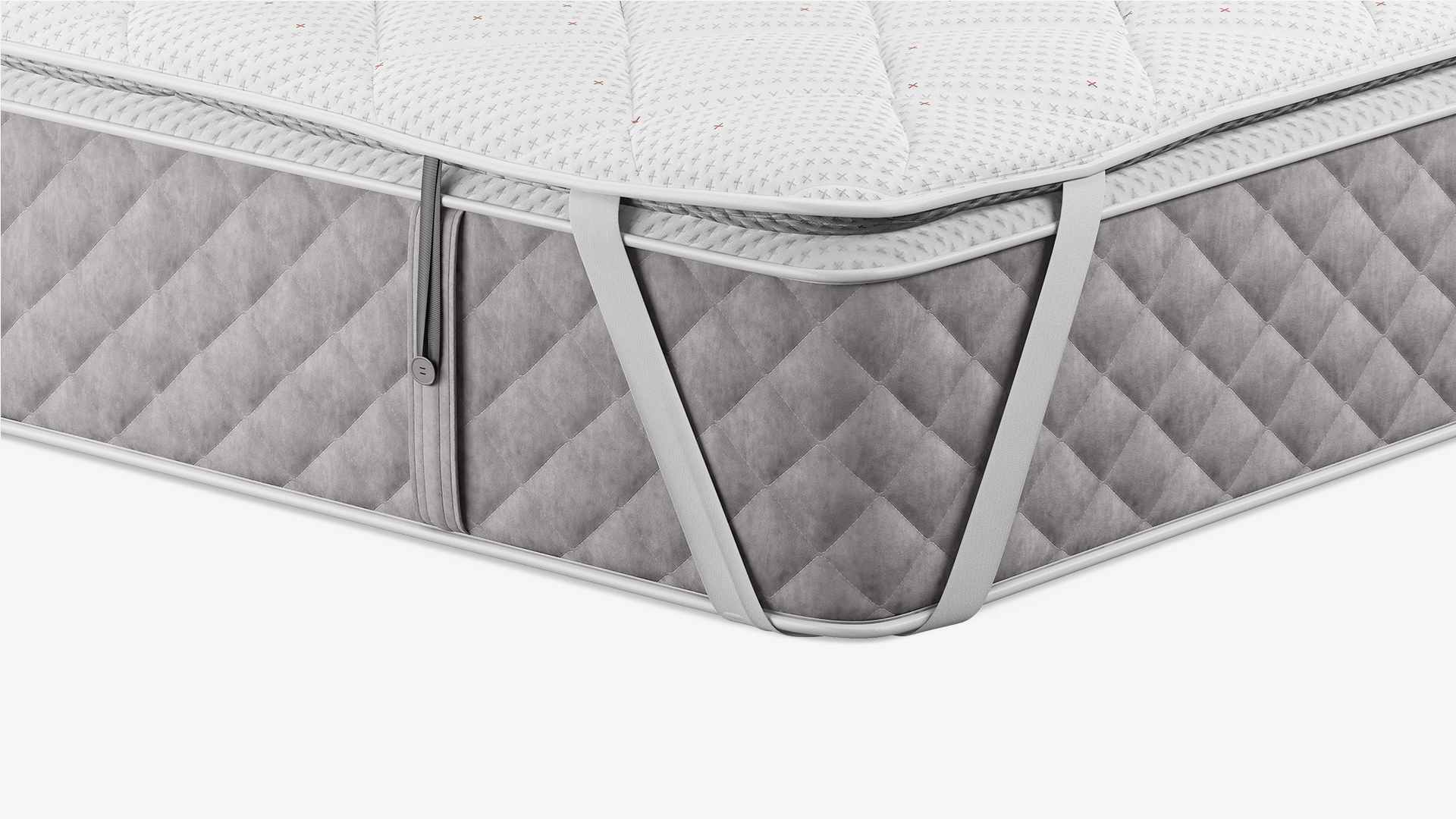 Топпер можно использовать как на диване, так и на матрасе. Фиксация на поверхности спального места осуществляется с помощью широких резинок в четырех угловых точках.