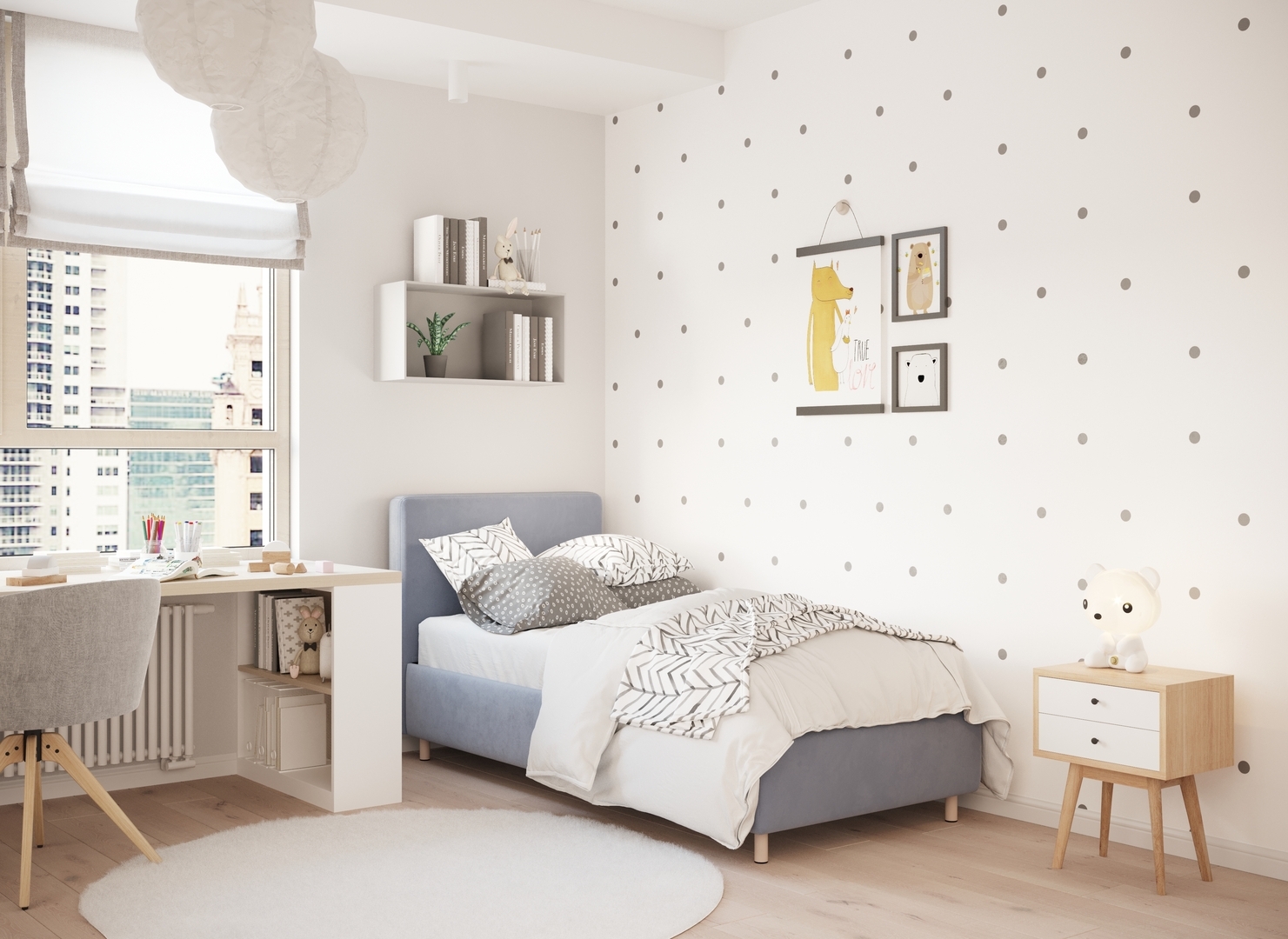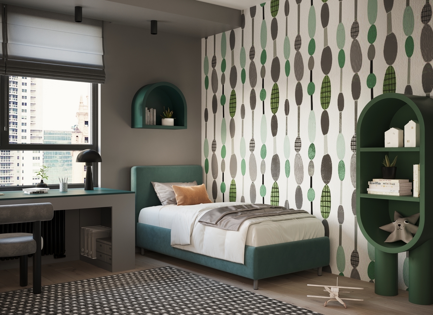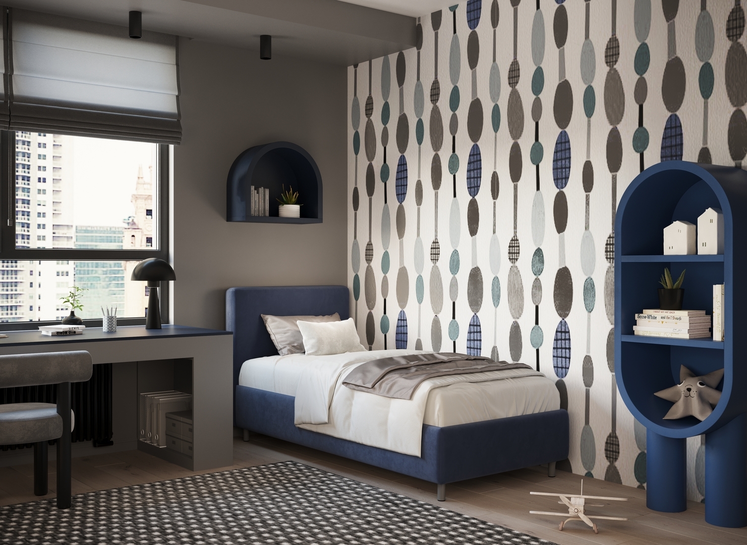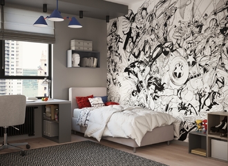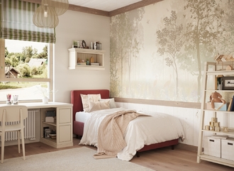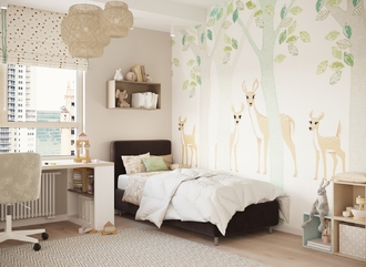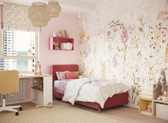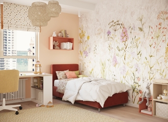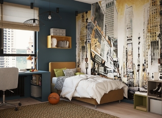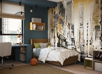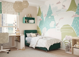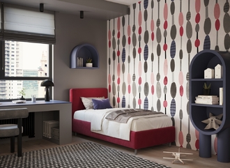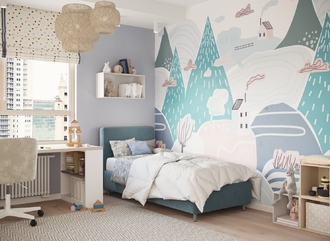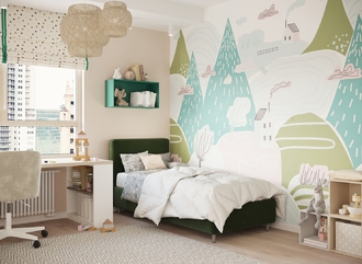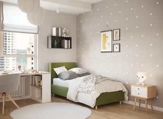 Обратная сторона изголовья выполнена в мебельной ткани и позволяет ставить кровать в центре комнаты для зонирования пространства.