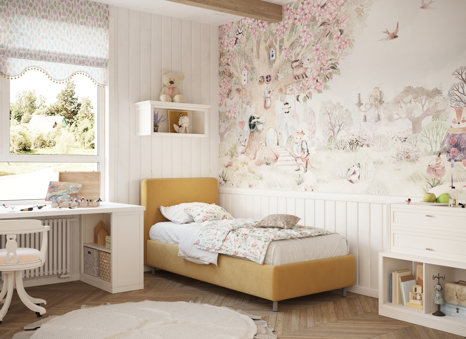 Творческий подход к выбору обивочного материала меняет образ дизайна. Велюр за счет своей бархатистой фактуры привносит в пространство шика и утонченности. Шенилл дополняет оформление спальни природными текстурами, создавая атмосферу тепла и уюта.