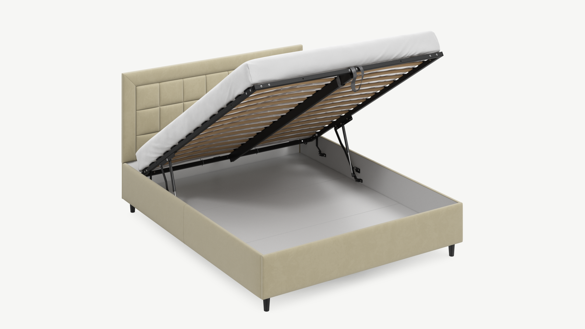 • Скрытая под основанием вместительная емкость без внутренних перегородок позволяет использовать всю площадь подкроватного пространства для хранения вещей.