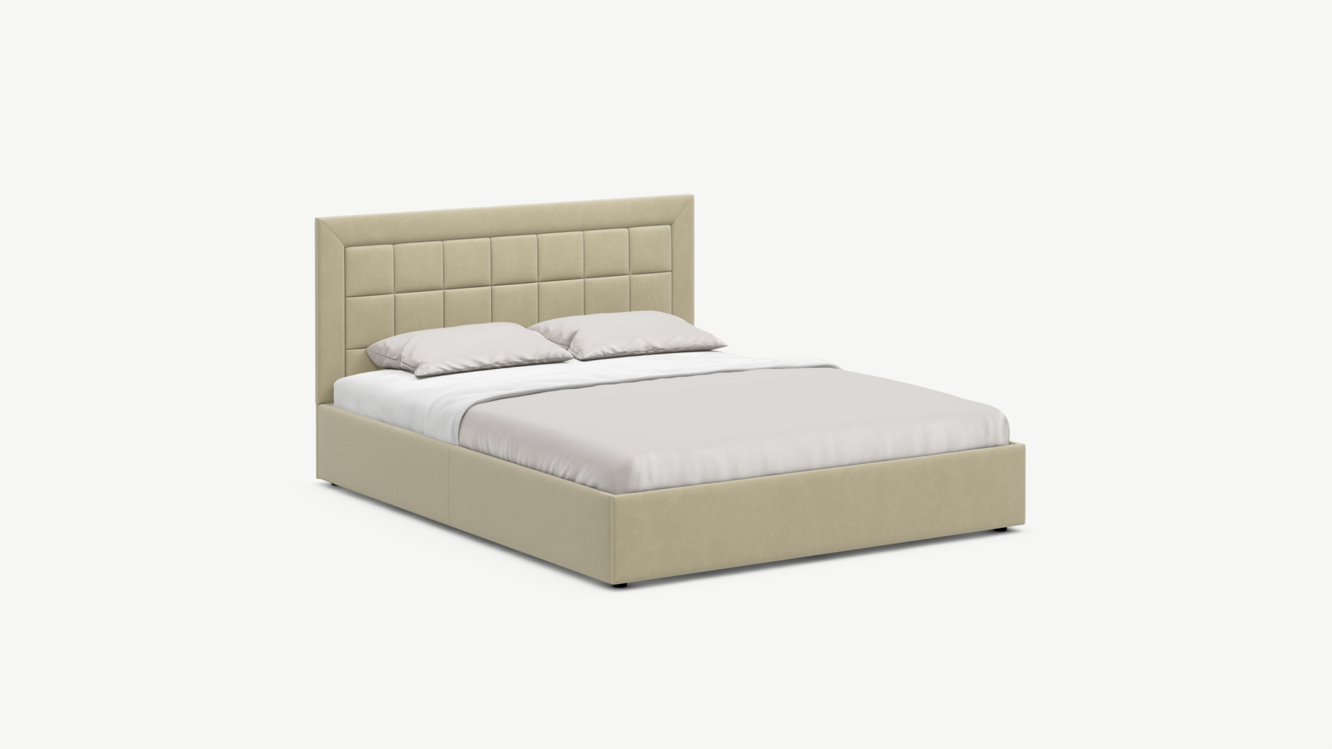 Лаконичная форма кровати MOON FAMILY 1251 украшена выразительным элементом, выделяющим этот Дизайн среди остальных. Изголовье декорировано рельефным рисунком стежки в крупный квадрат, получившим особую фактуру за счет глубины шва. Стежка помещена в центр изголовья и обрамлена, словно картина. Объемные царги завершают цельную фигуру кровати и становятся гармоничным дополнением ее образа.