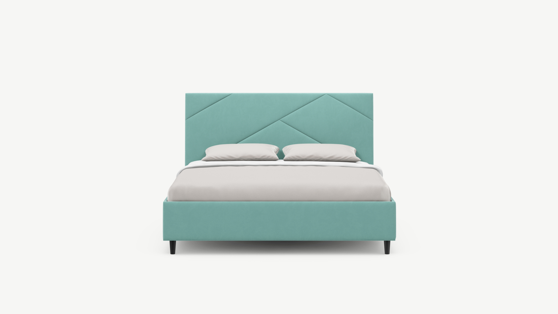 Элегантным и практичным акцентом служат скрытые карманы, расположенные по его углам. Лаконичные формы объемных царг создают единый гармоничный образ и фокусируют внимание на центральном текстурном элементе кровати.