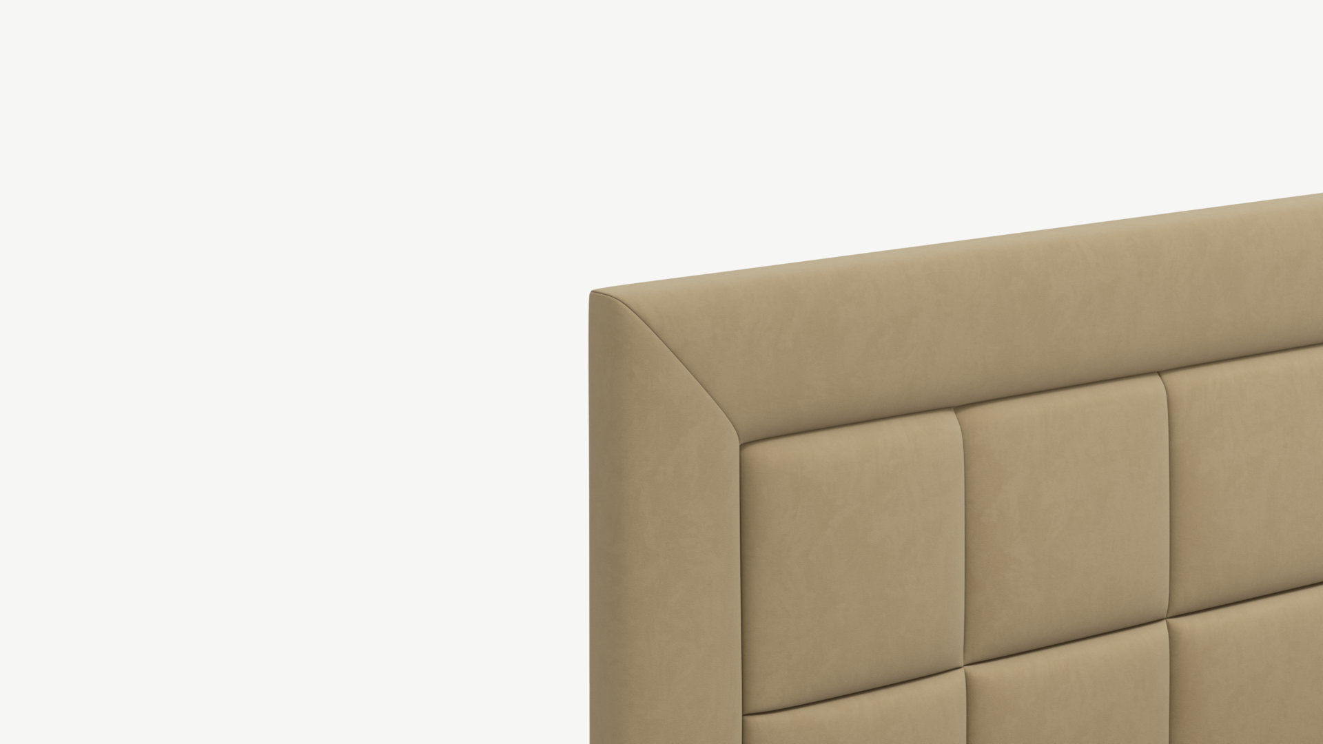 Изголовье декорировано рельефным рисунком стежки в крупный квадрат, получившим особую фактуру за счет глубины шва.