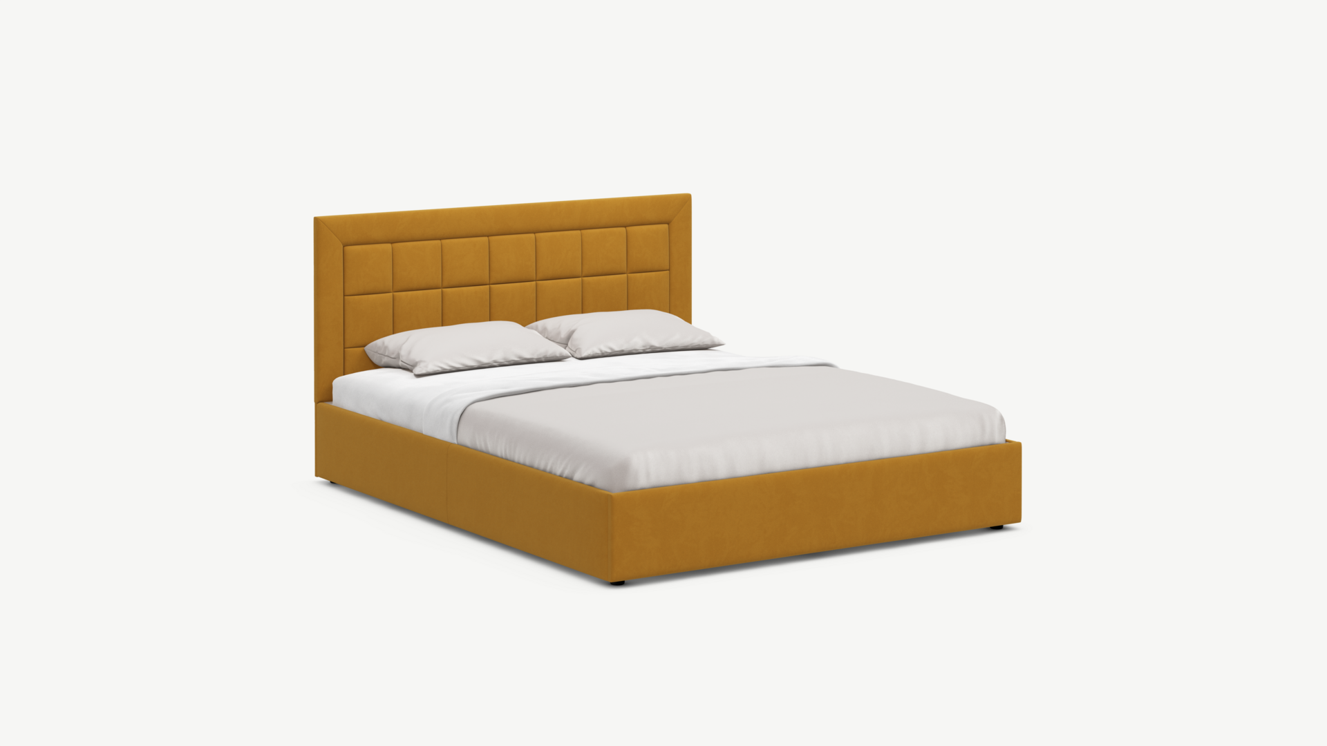 Изголовье декорировано рельефным рисунком стежки в крупный квадрат, получившим особую фактуру за счет глубины шва.