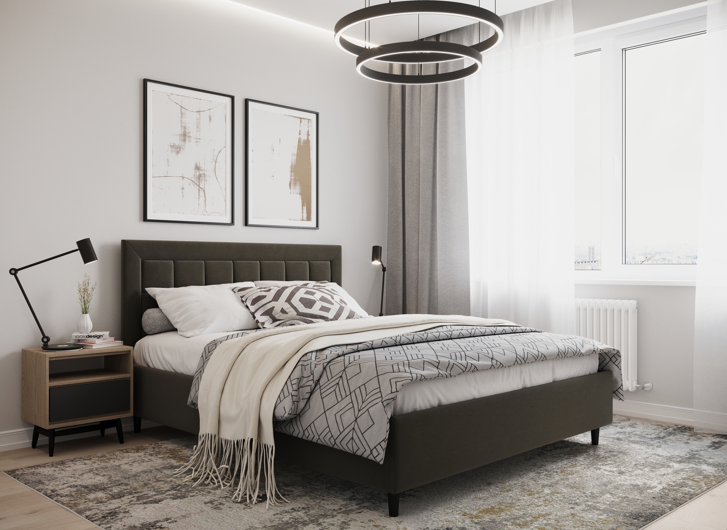 Стежка помещена в центр изголовья и обрамлена, словно картина. Объемные царги становятся гармоничным дополнением образа и завершают цельную фигуру кровати.