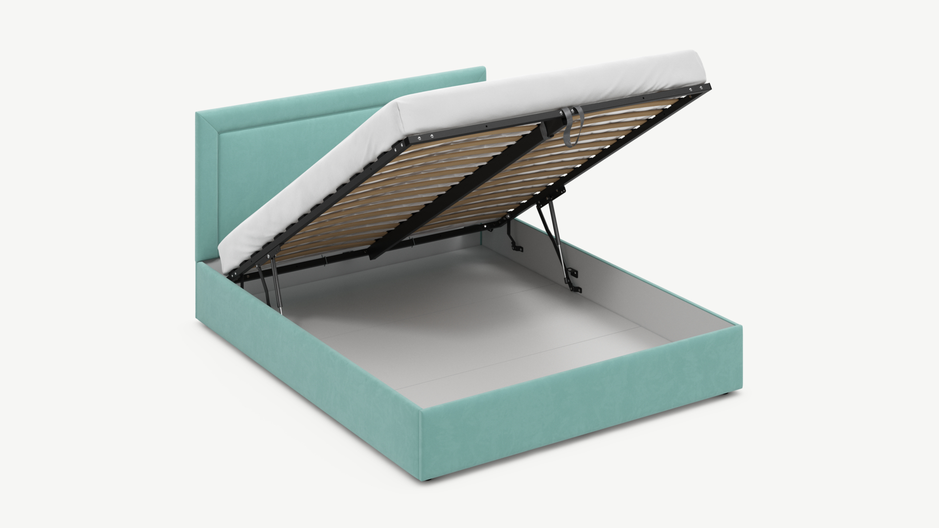 • Скрытая под основанием вместительная емкость без внутренних перегородок позволяет использовать всю площадь подкроватного пространства для хранения вещей.