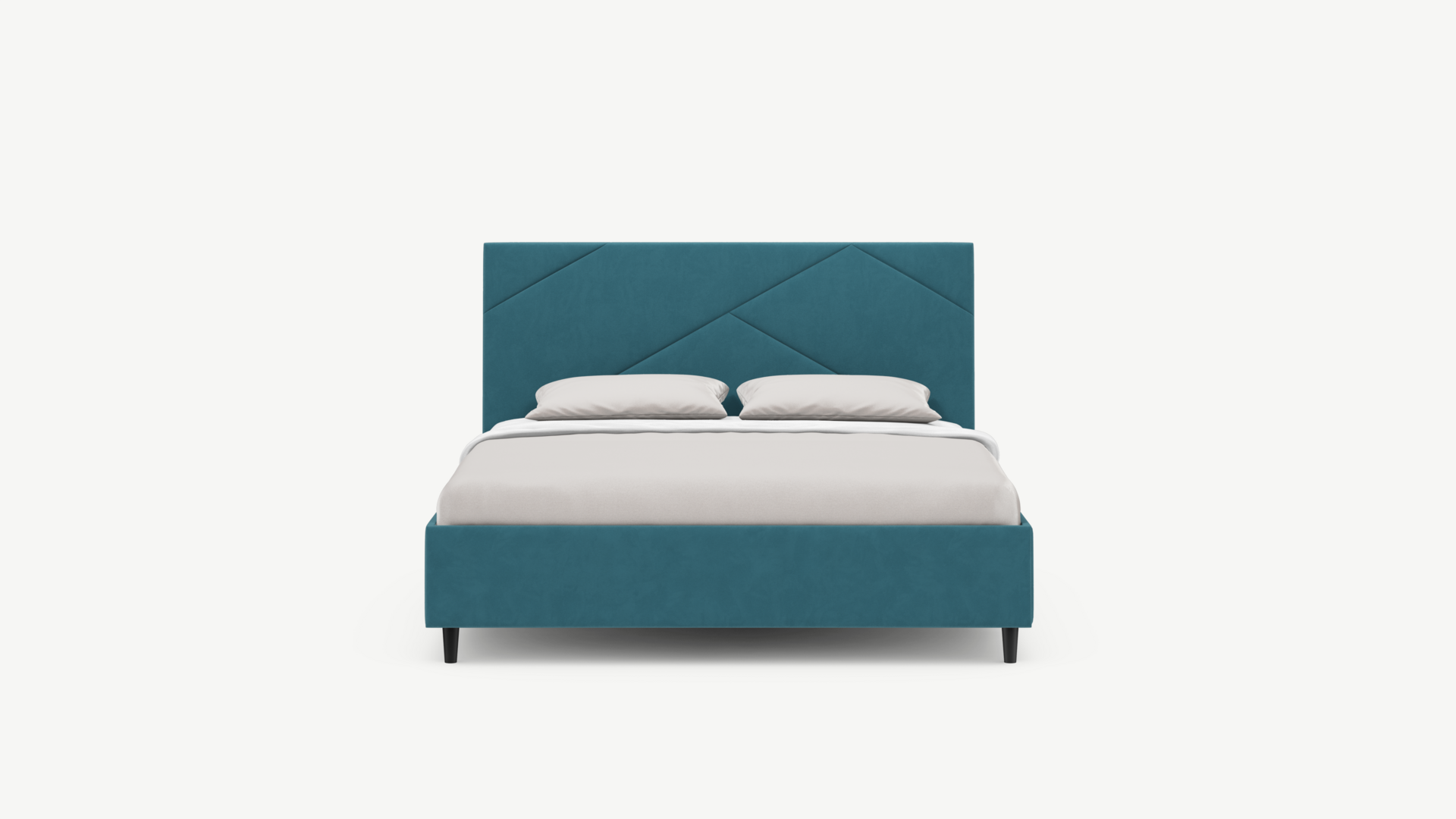 Элегантным и практичным акцентом служат скрытые карманы, расположенные по его углам. Лаконичные формы объемных царг создают единый гармоничный образ и фокусируют внимание на центральном текстурном элементе кровати.