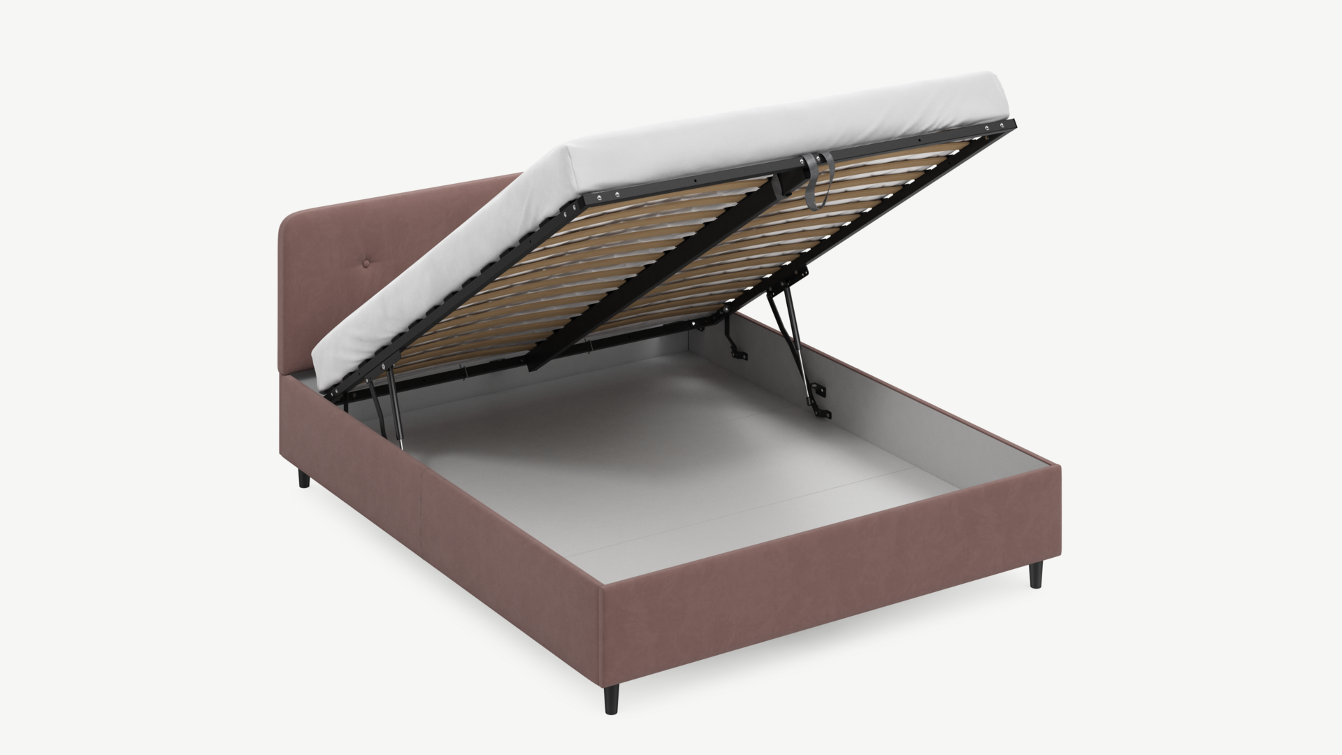 • Скрытая под основанием вместительная емкость без внутренних перегородок позволяет использовать всю площадь подкроватного пространства для хранения вещей.