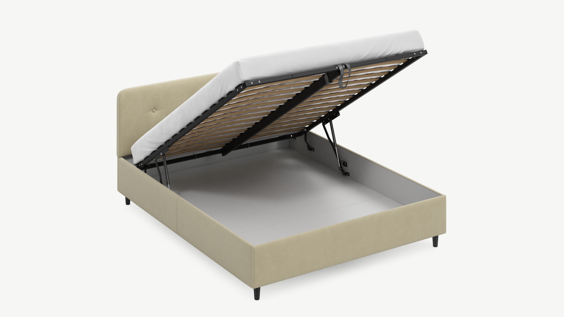• Скрытая под основанием вместительная емкость без внутренних перегородок позволяет использовать всю площадь подкроватного пространства для хранения вещей.