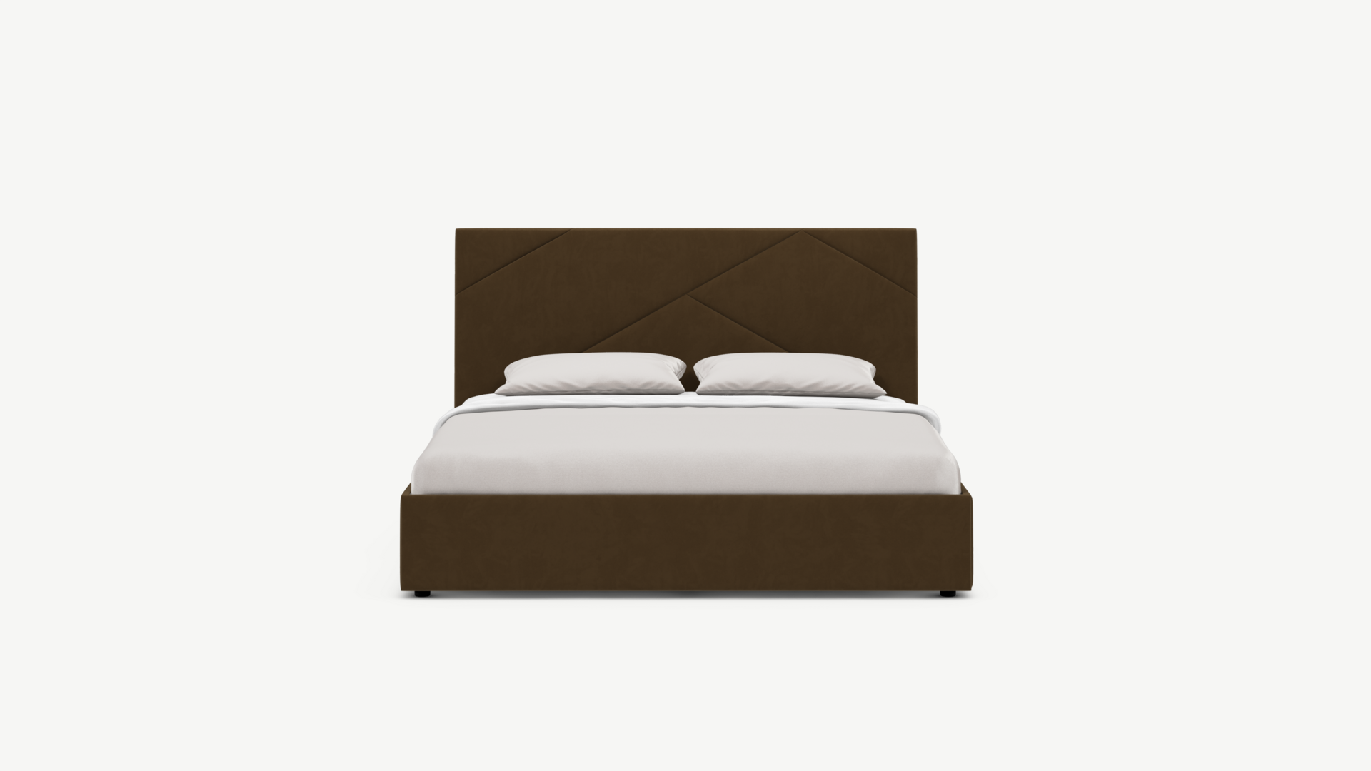 MOON FAMILY 1257 привлекает внимание оригинальным исполнением: широкие полосы ткани эффектно пересекают периметр изголовья, создавая на нем графический орнамент. Элегантным и практичным акцентом служат скрытые карманы, расположенные по его углам. Лаконичные формы объемных царг создают единый гармоничный образ и фокусируют внимание на центральном текстурном элементе кровати.