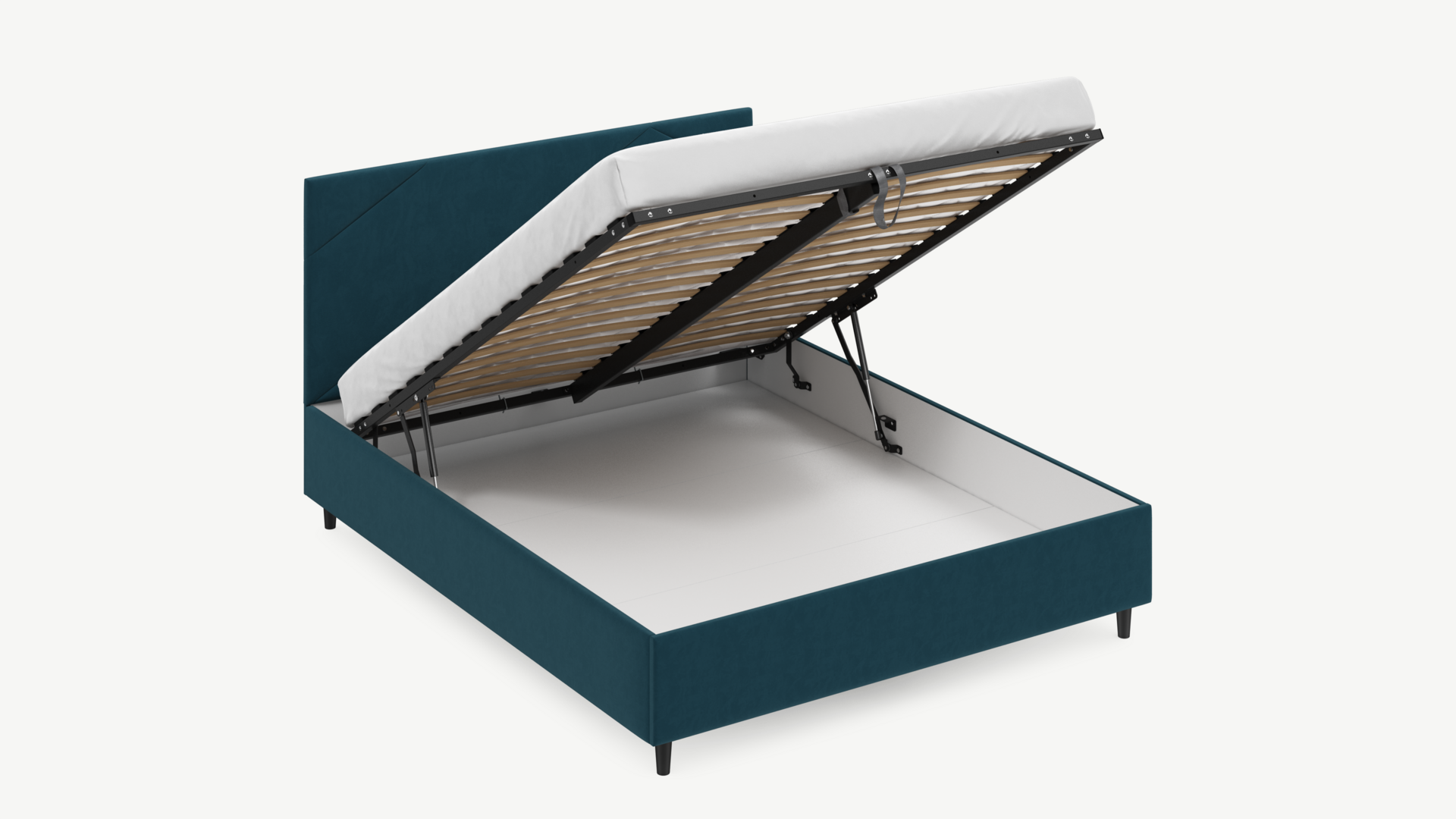 • Скрытая под основанием вместительная емкость без внутренних перегородок позволяет использовать всю площадь подкроватного пространства для хранения вещей.