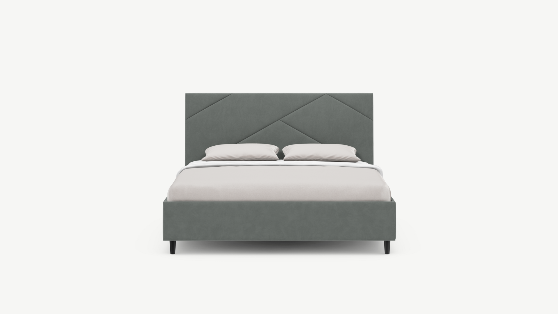 Элегантным и практичным акцентом служат скрытые карманы, расположенные по его углам. Лаконичные формы объемных царг создают единый гармоничный образ и фокусируют внимание на центральном текстурном элементе кровати.