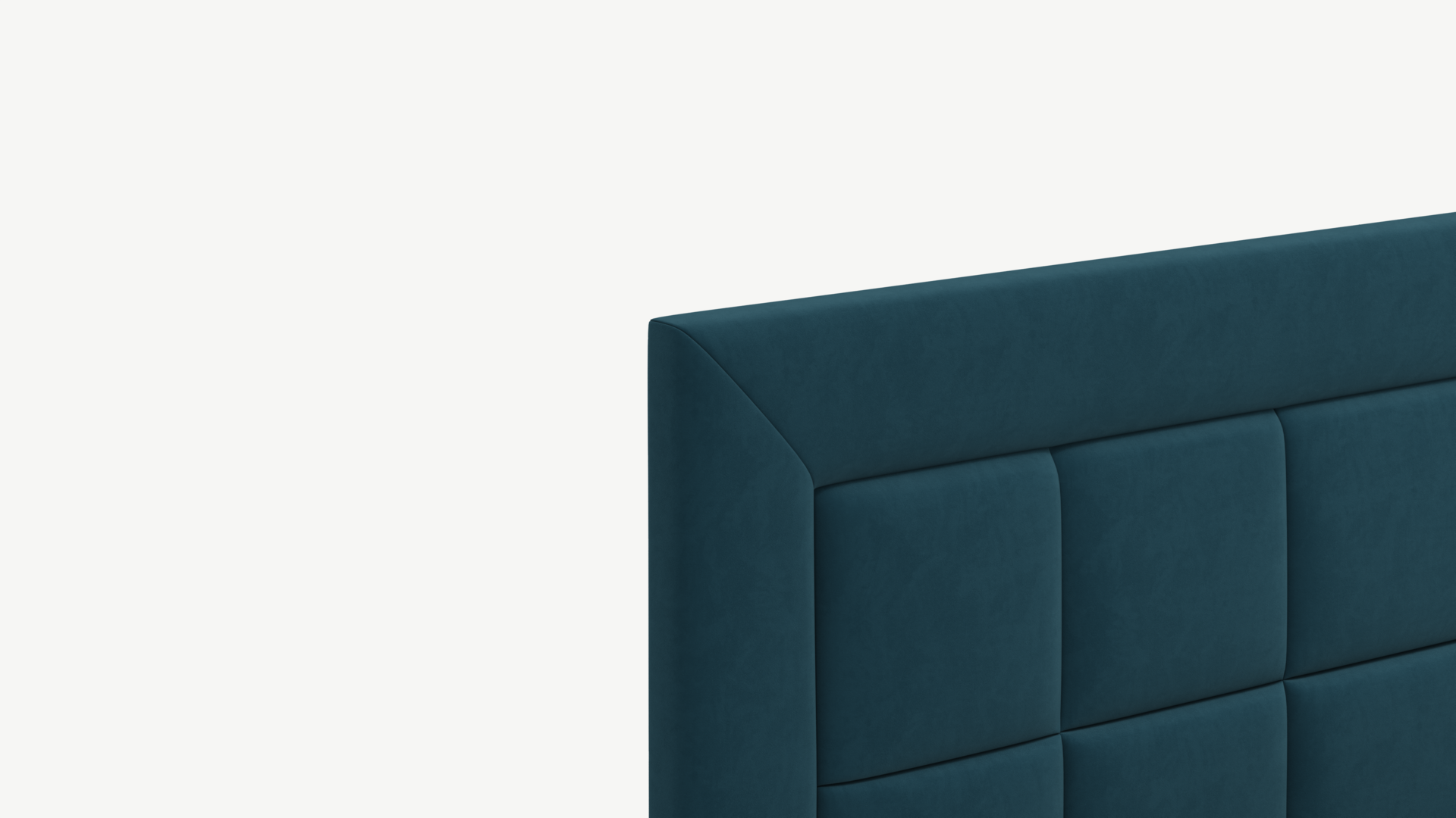 Изголовье декорировано рельефным рисунком стежки в крупный квадрат, получившим особую фактуру за счет глубины шва.