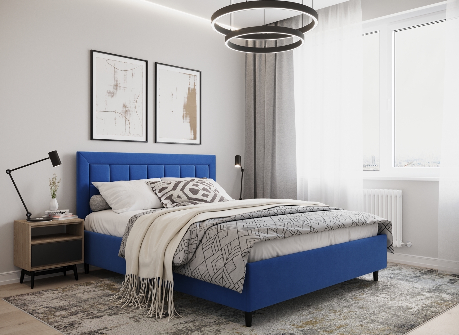 Стежка помещена в центр изголовья и обрамлена, словно картина. Объемные царги становятся гармоничным дополнением образа и завершают цельную фигуру кровати.
