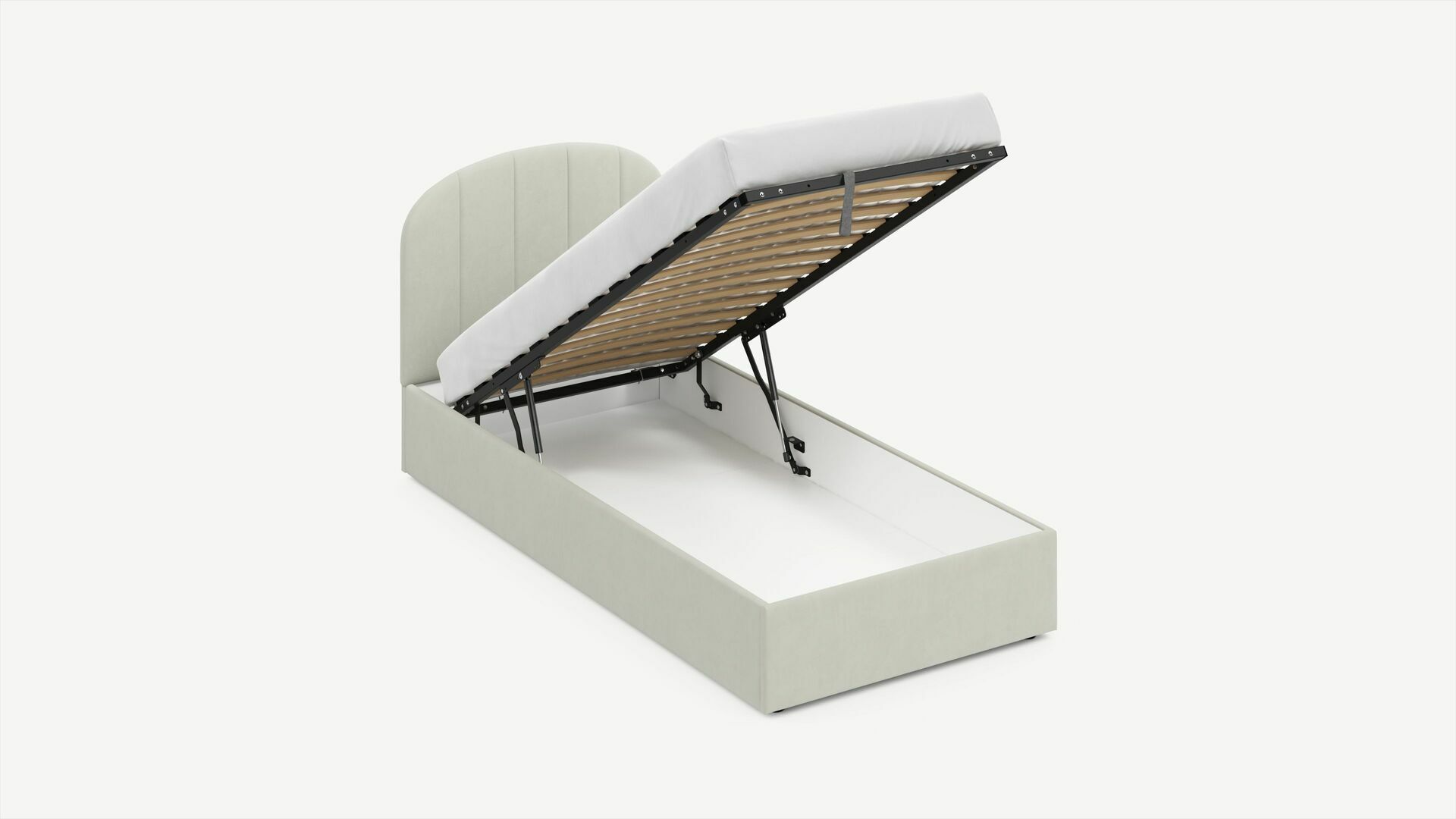 • Скрытая под основанием вместительная емкость без внутренних перегородок позволяет использовать всю площадь подкроватного пространства для хранения вещей.