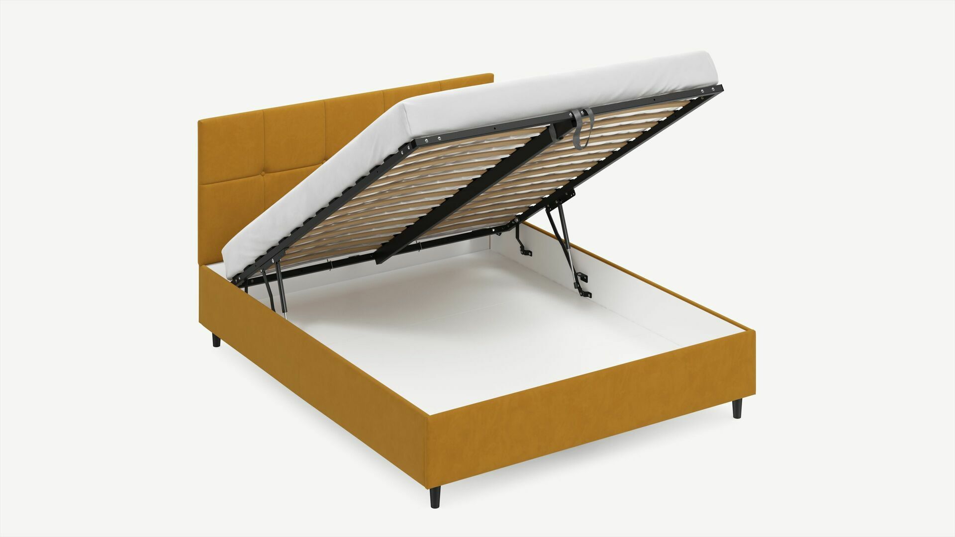 • Скрытая под основанием вместительная емкость без внутренних перегородок позволяет использовать всю площадь подкроватного пространства для хранения вещей.