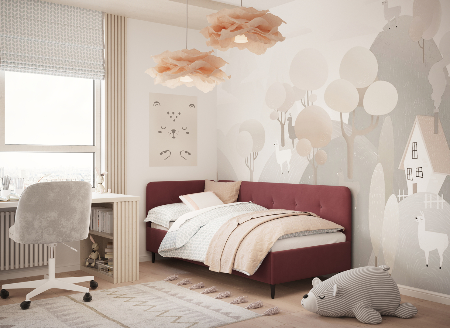 В подростковой комнате эта кровать станет стильным акцентом окружающего интерьера и возьмет на себя роль удобной кушетки для друзей, зашедших в гости.