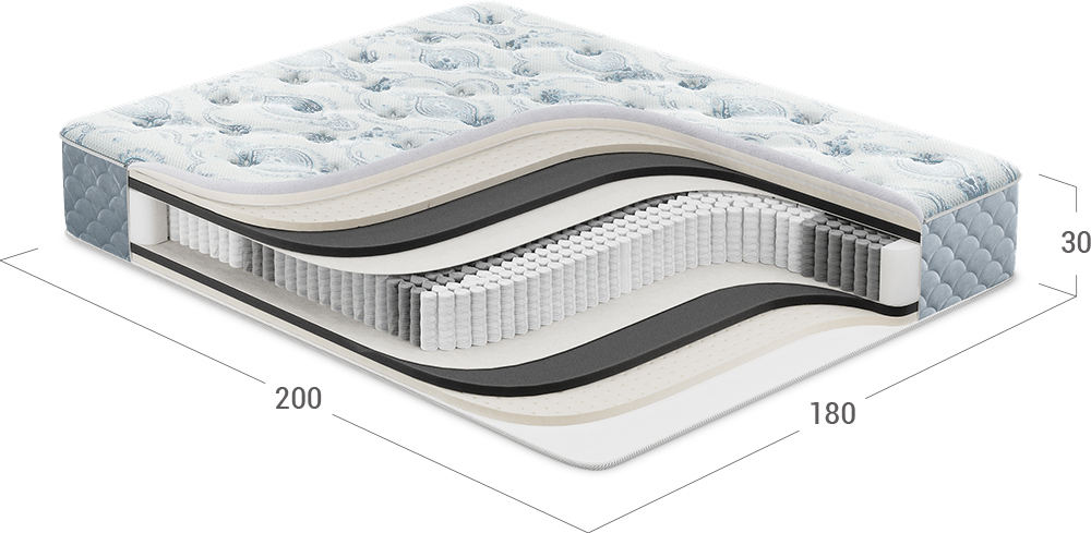 Матрас, в основу которого положен независимый пружинный блок (НПБ). Обратите внимание: чем большее количество пружин приходится на спальное место, тем точнее оказывается поддержка спины, а значит более комфортным становится матрас и Ваш сон.