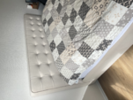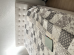 Обратная сторона изголовья выполнена в мебельной ткани и позволяет ставить кровать в центре комнаты для зонирования пространства.