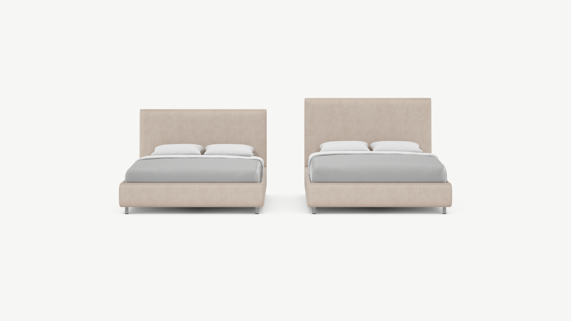 Творческий подход к выбору обивочного материала меняет образ дизайна MOON 1156. Например, однотонный гладкий велюр придает кровати эстетическую утонченность, в то время как фактурное тиснение на ткани усиливает игру перехода оттенков и выглядит особенно оригинально. Оформите образ кровати, выбирая обивку, которая подчеркнет звучание Вашей спальни и отразит Ваш вкус.